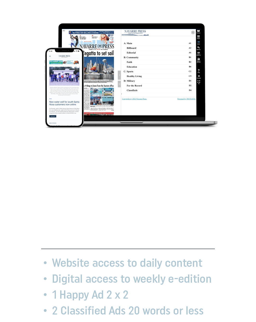 Please note: E-Edition Subscriptions cannot be purchased from within the Navarre Press app. Once you have completed the purchase of your digital subscription on your computer you can then download the app to view issues of Navarre Press.