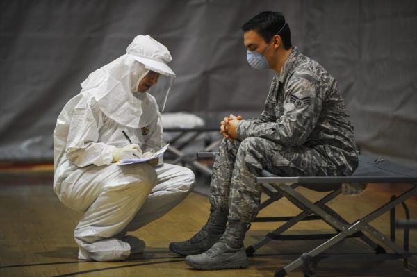 On Feb. 4, a bus full of simulated sick patients arrived at the 1st Special Operations Medical Group. These patients were greeted by more than seven people dressed in white contamination suits. The airmen from the 1st SOMDG began their annual disease containment plan exercise.
