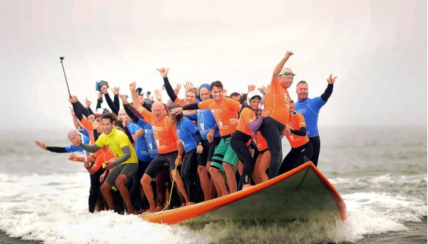 66 surfers set record for most people riding a board at once