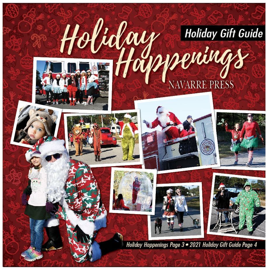 The Navarre Beach Area Chamber of Commerce Annual Christmas in the Park “Joy To The World!” will be located at Navarre Park, 8513 Navarre Parkway from 9 a.m. to 4 p.m. The Annual Navarre Community Christmas Parade starts at 1 p.m. at the Navarre Library and runs south on Presidio Street, left on Esplanade Street. and ending in the back parking lot of Centennial Bank. Local artists and crafters will gather with great gifts at the Merry Market, take photos with Santa, Mrs. Claus and the Grinch. Enjoy free baked goods and hot beverages at Mrs. Claus’ Bakery sponsored by Okaloosa Gas after the parade. For more information visit www.navarrechamber.com or call 850-939-3267.