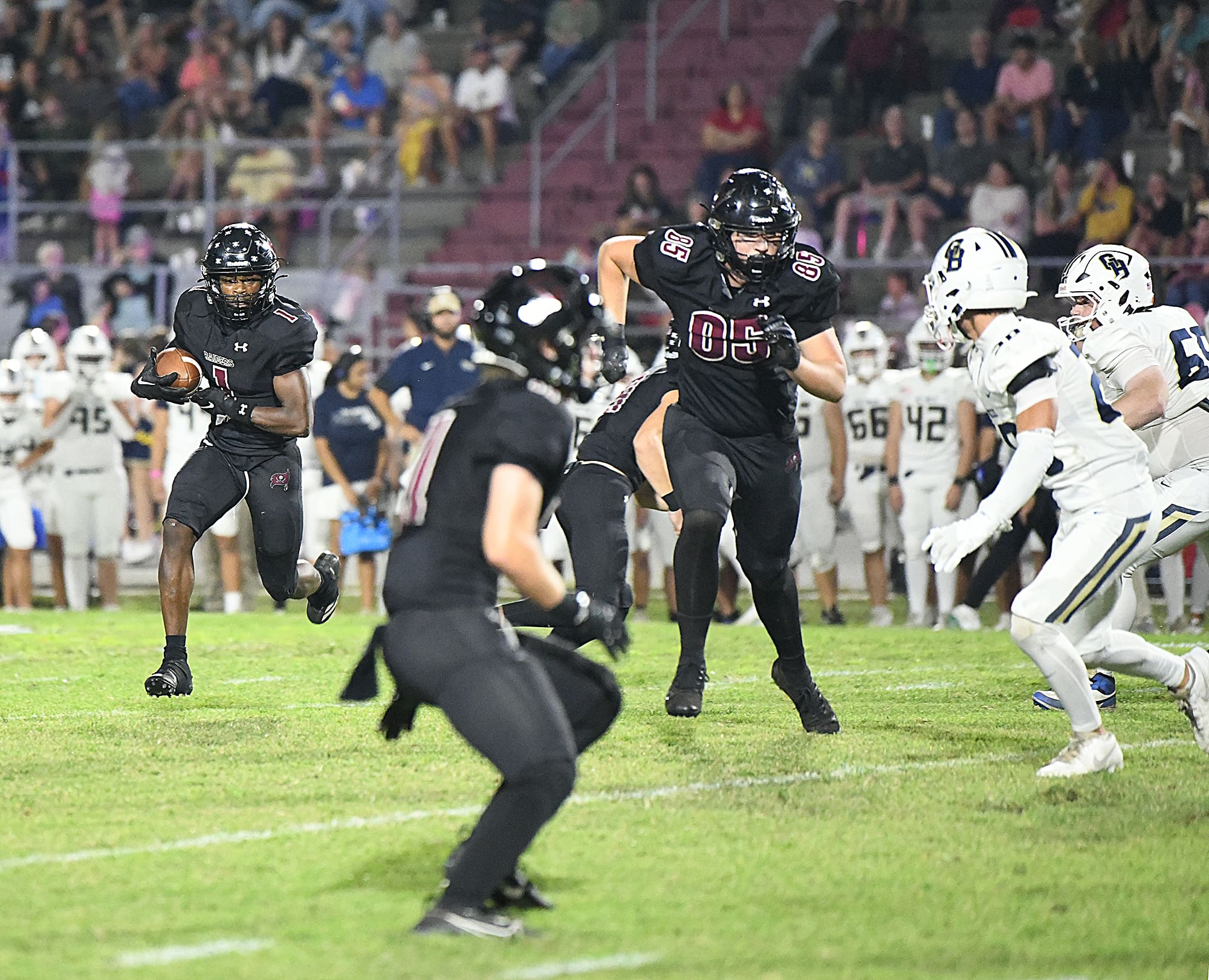 Marquez White follows his blockers as he picks up yards in a game against Gulf Breeze on Oct. 17.