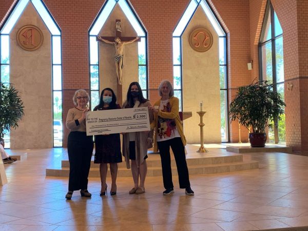 At a Feb. 21 Sunday mass, the St. Sylvester’s chapter of the Columbiettes presented a $2,500 donation to the Pregnancy Resource Center of Navarre (PRCN).