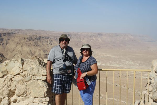 Mark and Janet Pokroy of Navarre are pictured on top of Masada with the Dead Sea behind them.