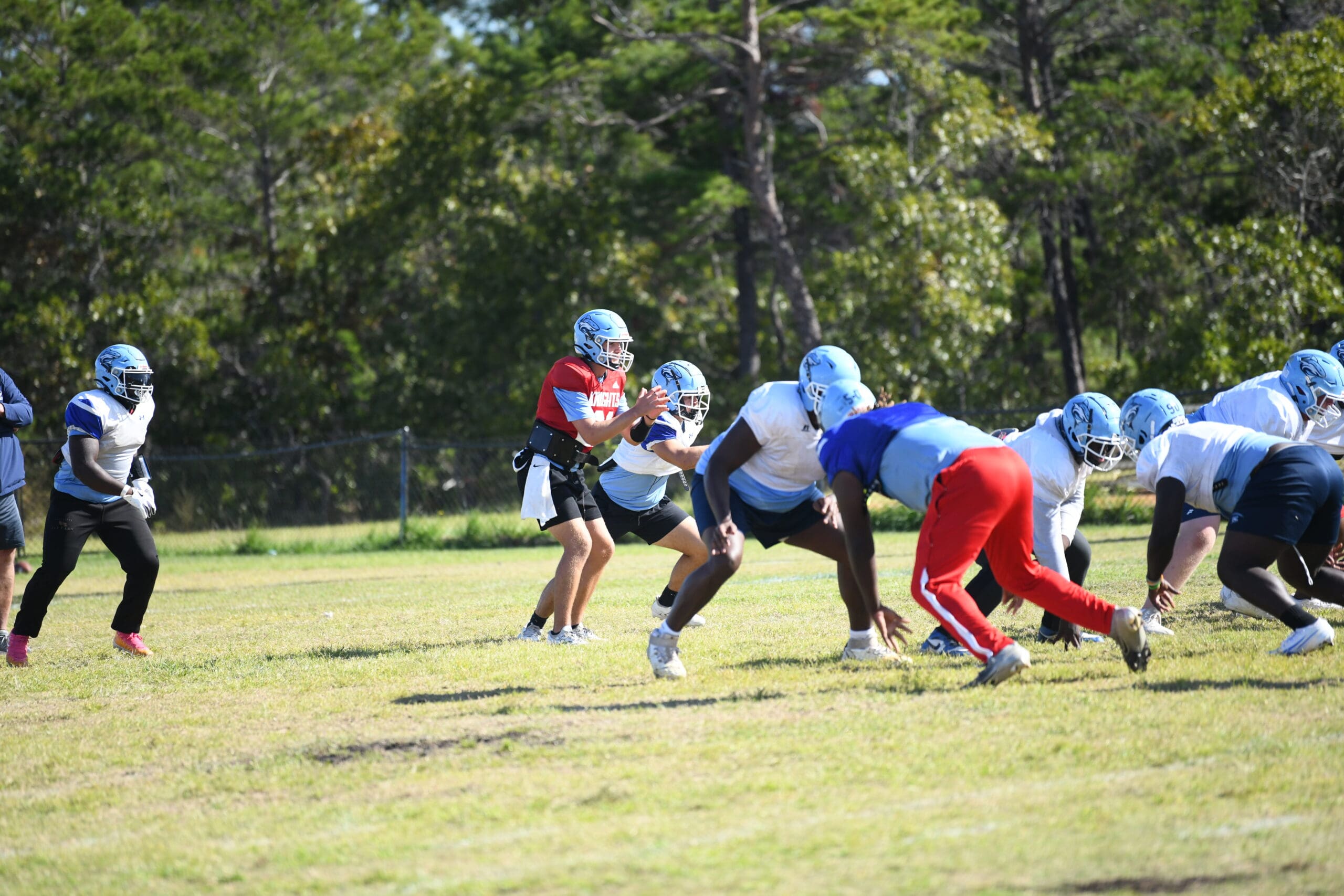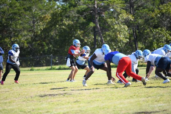Lighthouse Christian College’s football team practices Thursday morning.