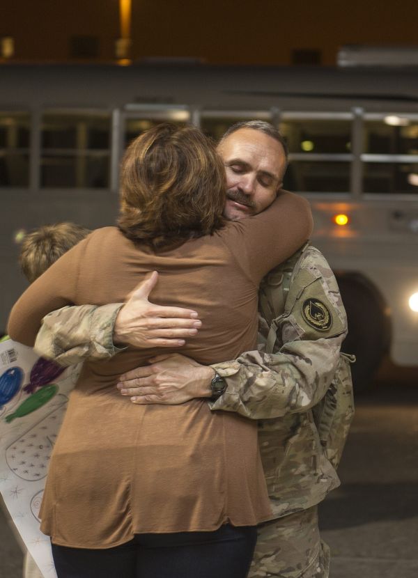 Family members and Airmen from Hurlburt Field welcome home their fellow Air Commandos during Operation Homecoming at the deployment control center April 10.