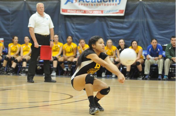 Nysha Frank comes through with a dig during Thursday’s Subway All-Star Game at the University of West Florida. Frank represented Navarre on the East squad.