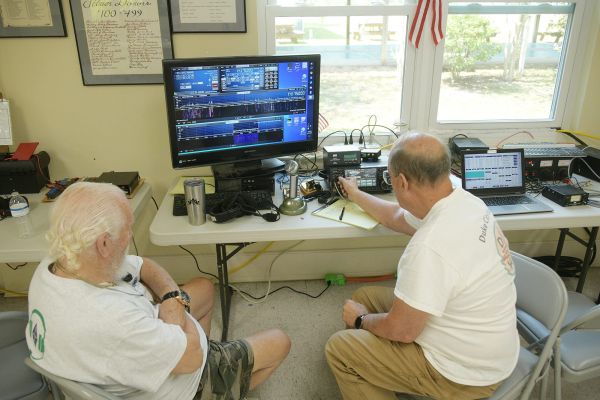 JD Barron and Pat Libertell make contacts using morse code.