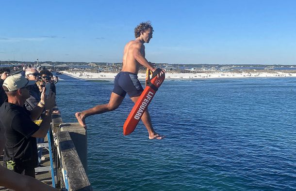 Most days, jumping off the Navarre Beach Fishing Pier isn’t a welcomed sight. Monday, Feb. 16, wasn’t one of those days.