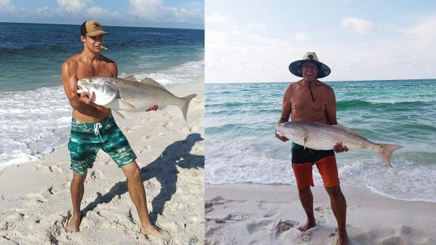 Son reels in same kind of fish as dad on same pole at same beach, one year later