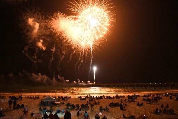 Crowds filled Navarre Beach to watch July 4th fireworks Sunday evening and enjoy Johnny Earthquake & the Moondogs perform before the fireworks show.