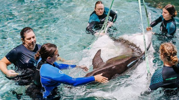 Four rough-toothed dolphins from Gulf World in Panama City were sent to Clearwater Marine Aquarium June 4.