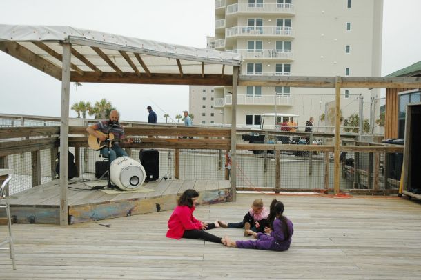 The deck of the Navarre Beach Fishing Pier was buzzing with activity March 15 in spite of chilly, windy weather. Locals and tourists mingled, enjoying live music at the re-opening of the pier’s outdoor bar, which has been named Lagerheads.