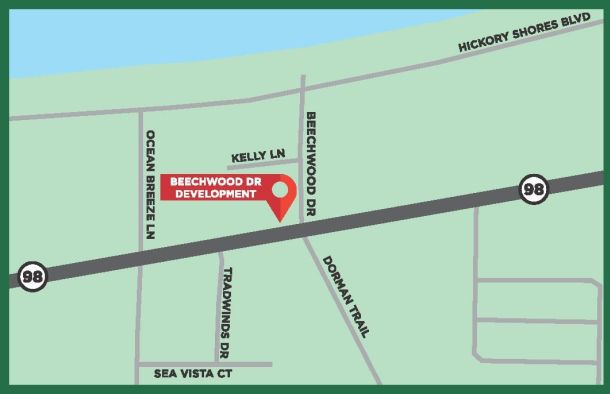 A new development is coming to the corner of Beechwood Drive and Highway 98 in the Tiger Point area. Two buildings are currently planned for the site, in addition to parking for those structures. One building will be built north of the other.