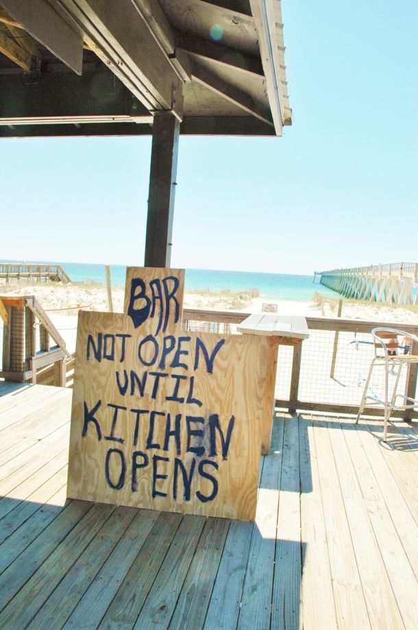 The Navarre Beach Fishing Pier bar, Lagerheads on the Gulf, reopened April 19 after having been closed for about 10 days. County Administrator Hunter Walker and County Attorney Angie Jones advised the management team that their contract prohibited operating the bar without food being served.