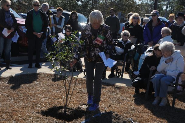 On a cold but sunny Friday morning at Navarre Gardens, a new assisted living facility in town, several residents gathered for the Arbor Day ceremony put on by the Navarre Garden Club.