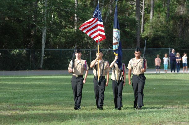 Students in grades three through five gathered outside West Navarre Intermediate Friday morning for a flag ceremony that put an exclamation point on Patriot Week at the school.