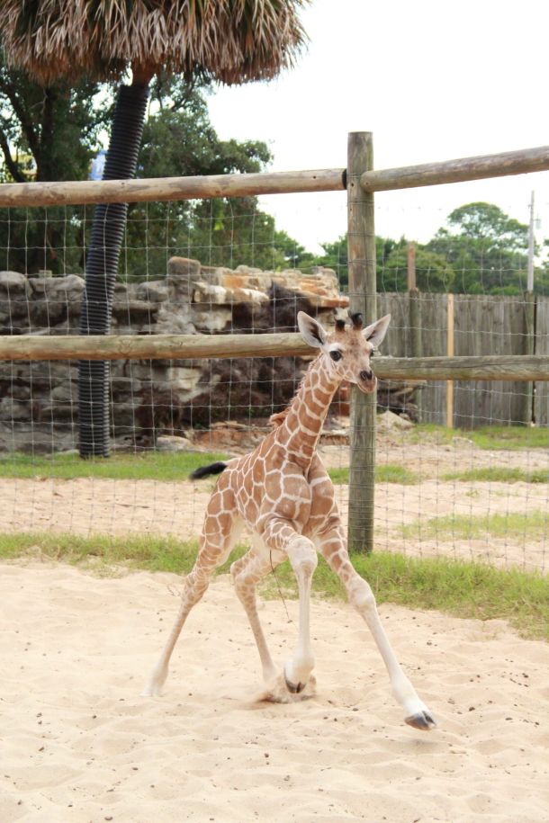 The Gulf Breeze Zoo welcomed a tall new family member Aug. 2 with the birth of baby reticulated giraffe Gibson bringing the zoo’s giraffe herd to four members.