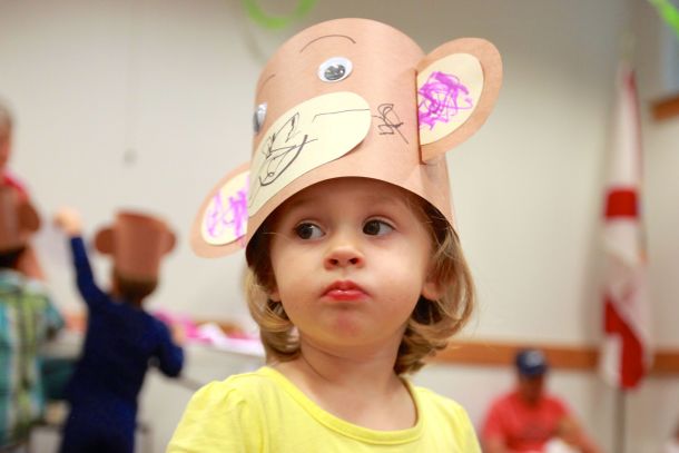 “He says, ‘Ooo ooo ahh ahh!’” 3-year-old Auburn Clark said, moving her arms like a monkey and sporting her green Curious George shirt at the Navarre Library’s Monkey Party Sept. 16.