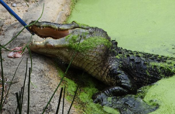What does an alligator named Sam eat for lunch? If you guessed “anything that he wants to,” then make plans to visit the Gulf Breeze Zoo and see if you are right. The zoo began public alligator feedings earlier this month. They are held at 3 p.m. Wednesdays and Saturdays and feature the zoo’s 13-foot male alligator, Sam.