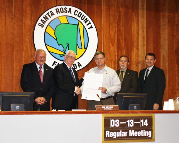 The Santa Rosa County Commissioners at their meeting March 13 approved a resolution recognizing March as American Red Cross Month. America Red Cross of Northwest Florida executive Jerry Kindle attended the meeting.