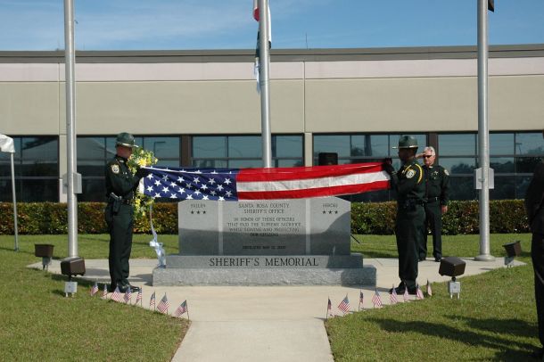 A ceremonial marker for fallen heroes at the Santa Rosa Sheriff’s Office remains without the first name engraved in honor of a county officer slain in the line of duty. However, all law enforcement officers form a brotherhood, and that idea is not lost on local officers.