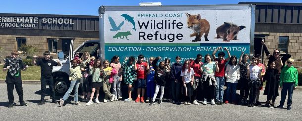 Students at Holley Navarre Intermediate School went above and beyond this year to help solidify a tradition of giving started last year by Amie Teschel, a fourth-grade teacher. Every participating class of students competes in a donation item drive, and the class with the most items wins a special in-class visit from Emerald Coast Wildlife Refuge (ECWR) and some of their ambassadors.