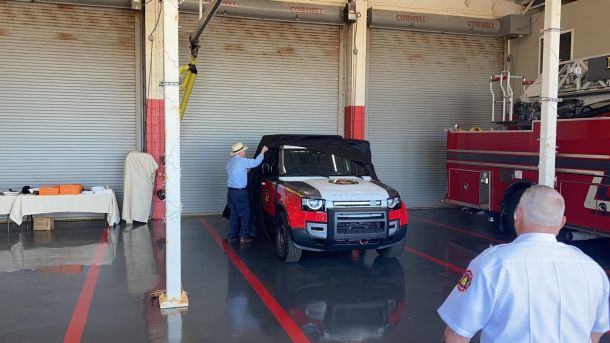 Harrell Schaeffer, who nominated Navarre Beach Fire Rescue for the Landrover competition, helped unveil the newest member of NBFR’s fleet of vehicles.