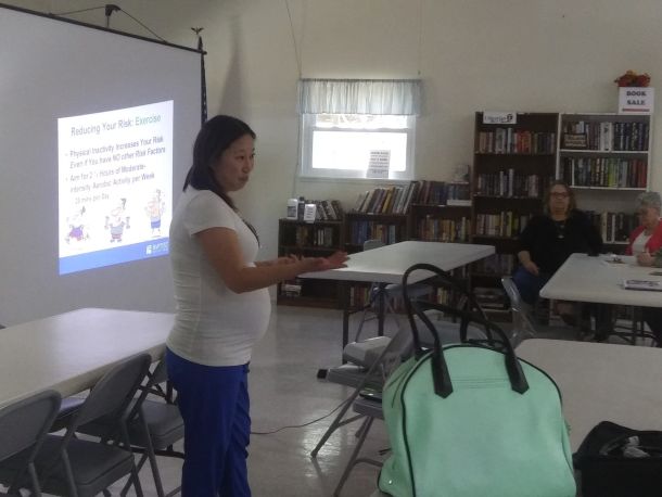 Margo Kernon listened to the stories from those at Holley Navarre Senior Center who came out to listen to the RN from Baptist Health Care speak about strokes last Wednesday afternoon.