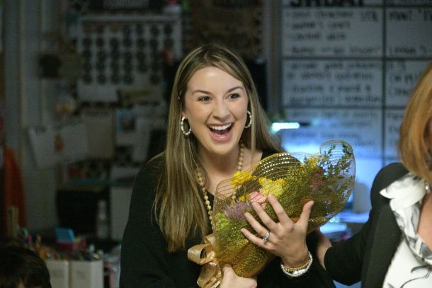 A cacophony of celebration ignited inside Kayla Stanford’s fifth-grade classroom Tuesday, Feb. 4, as Santa Rosa District Schools Superintendent Dr. Karen Barber and others surprised Stanford with the announcement that she was District teacher of the year.