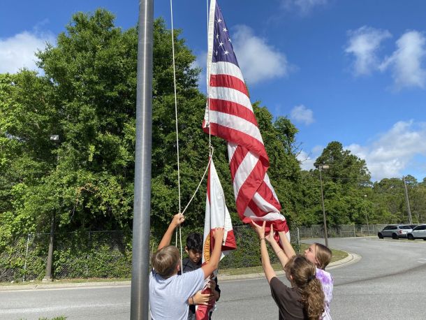 Each day at Holley-Navarre Middle School, the flag is raised and lowered by a select group of students.