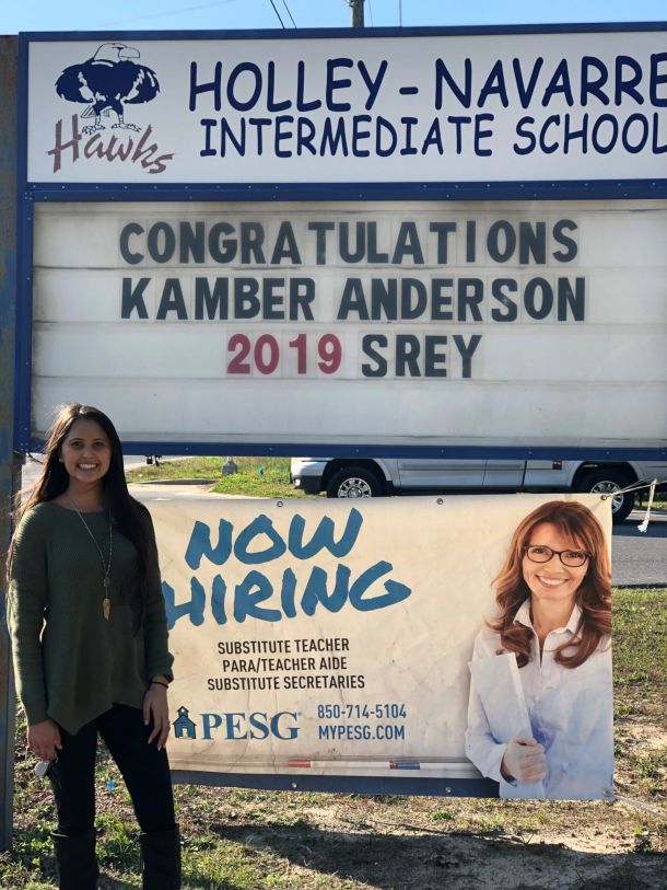 Not all that long ago, 21-year-old Kamber Anderson was walking the halls of Holley Navarre Intermediate School (HNIS) as a student. Now she’s the school’s Santa Rosa Employee of the Year.