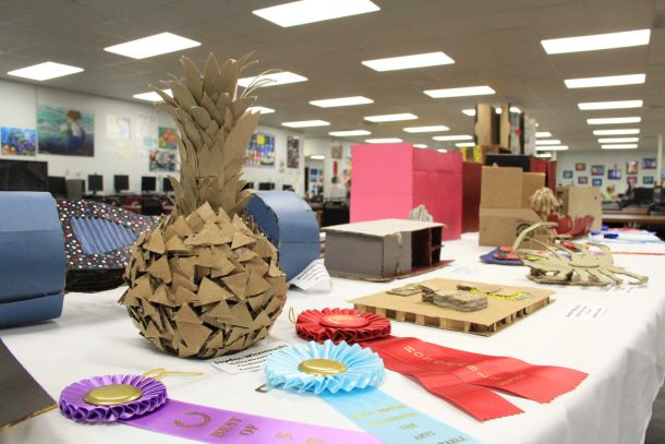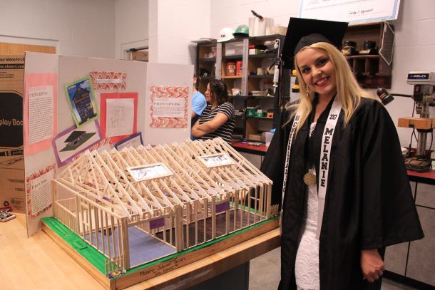 Navarre High School Construction Academy students put forward their final projects, model homes and a functional tiny house frame, for judging May 18 as part of the end of year showcase.