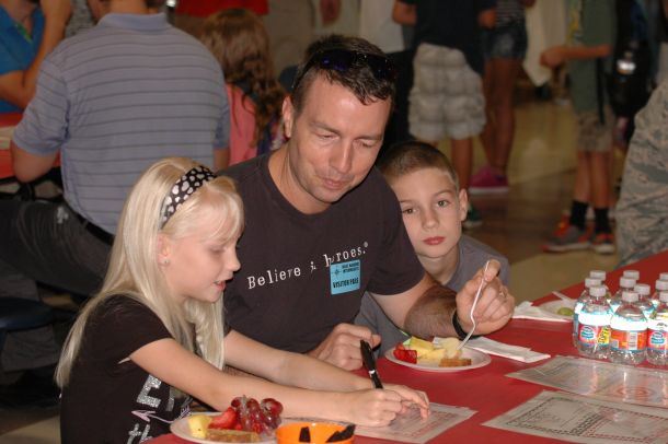 Sandra Drost couldn’t help but look around the West Navarre Intermediate cafeteria and smile at the sight of so many fathers spending quality time with their children in a school setting.
