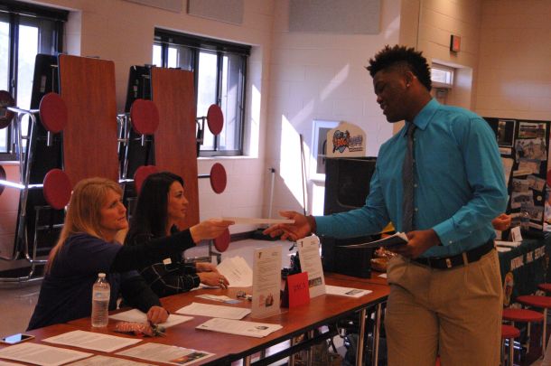 Zamir Jones is eager to find a job and took full advantage of the opportunity to speak with potential employers at the Navarre High School Job Fair Thursday morning in the cafeteria.