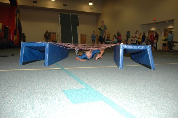 Reverend Pete Belmain was all smiles as he welcomed 20 children into Bible B.O.O.T. camp at Midway Baptist Church July 10. The children checked in before heading to stations where they had an id photo taken, got physicals, had “gun range” training with BB guns before running through a timed obstacle course.
