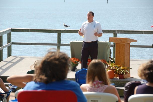 Living in an area as beautiful as Navarre, Pastor Steven Prahl of Risen Savior Lutheran Church finds dual purpose in holding services outside, like last Sunday’s “Worship by the Water” at Navarre Park.