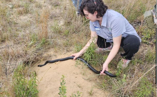 Bristol – In a quiet preserve along the eastern bank of the Apalachicola River, 41 eastern indigo snakes were released Tuesday into gopher tortoise burrows.