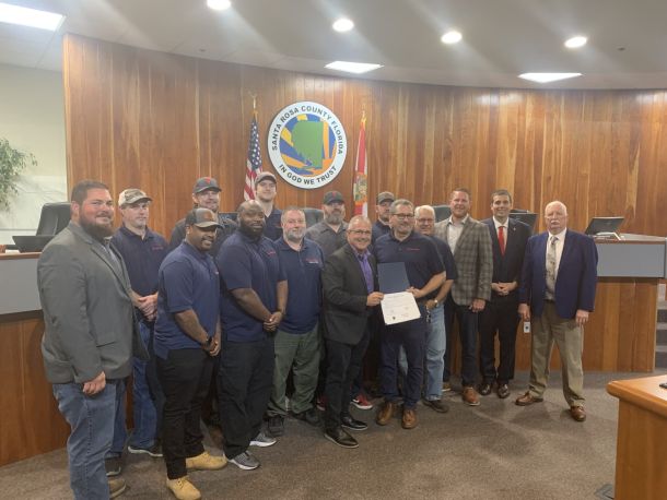 The Santa Rosa County Commission on Thursday proclaimed its appreciation for 11 Leonardo Helicopters and Leonardo DRS employees who pulled a pilot from a crashed private plane at Peter Prince Airport on Monday, Feb. 6.