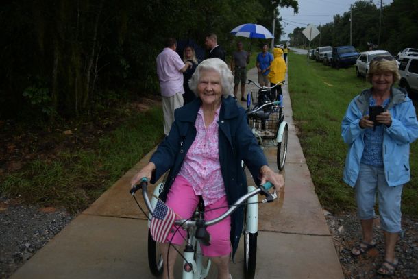 ‘It’s amazing’: 95-year-old cyclist Eure first to cross new Tom King Bayou Pedestrian Bridge