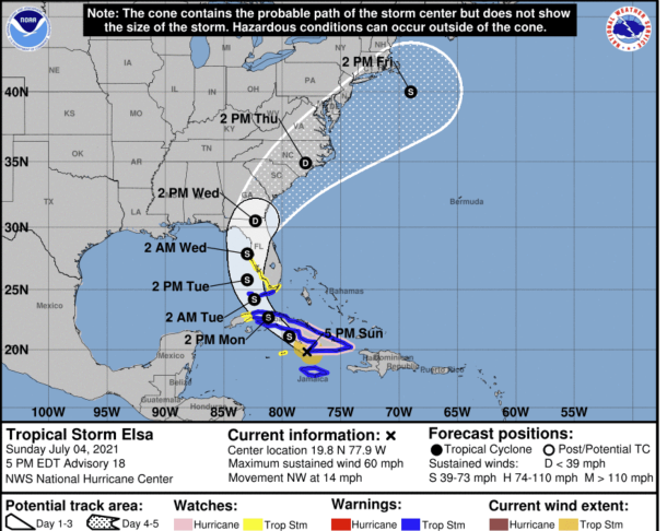 Elsa downgraded to tropical storm, path targets Florida peninsula