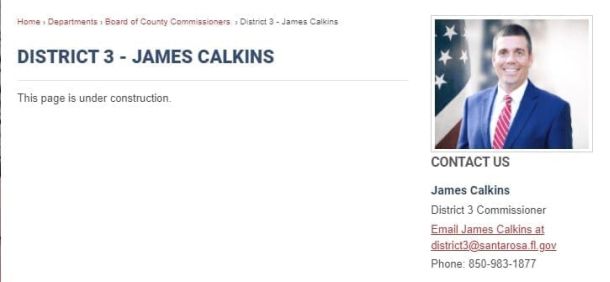 Santa Rosa County District 3 Commissioner James Calkins has a surprise for his webpage on the Board of County Commissioners’ website.