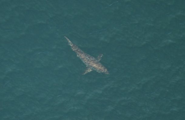 A great white shark was caught off the Navarre Beach Pier a few weeks ago. It was 10 feet long, weighed 650 pounds and took nearly an hour to reel in.