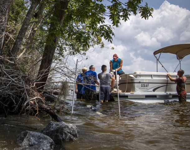Eglin Air Force Base – Nearly 100 volunteers have taken turns moving rocks along Eglin’s shorelines near Postl Point to protect nearby archaeological sites from the impacts of erosion.
