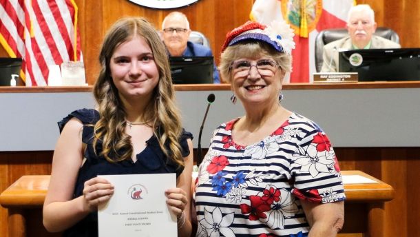 At the Board of County Commissioners meeting May 22, local middle school students and one high school student received awards for their essays about the American government.