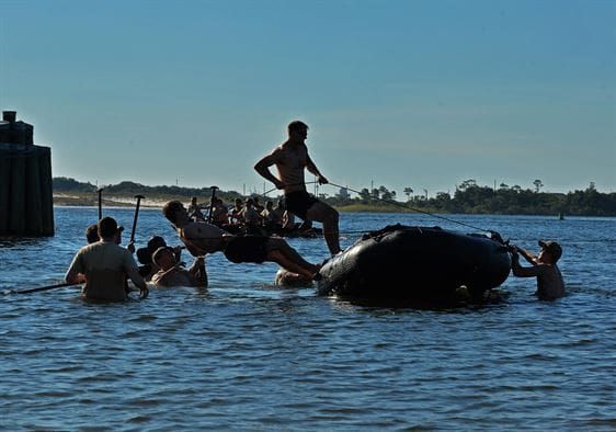 Air Force Special Tactics airmen dedicated military freefall training into the Pensacola Bay to Staff Sgt Forrest Sibley, a combat controller from the local killed in action, Aug. 26, 2015, in Helmand Province, Afghanistan, on the first anniversary of his death.