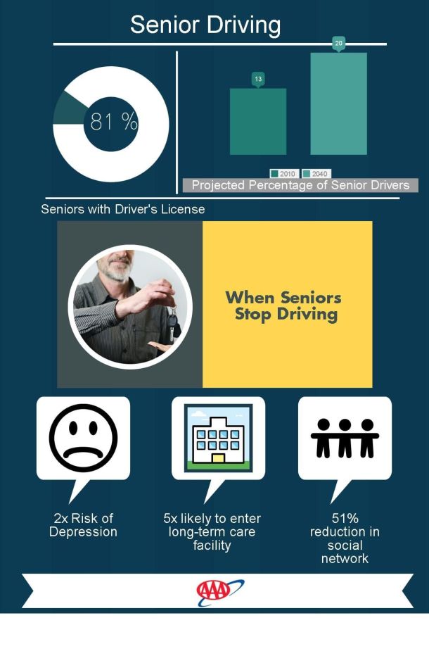 Older adults who have stopped driving are almost two times more likely to suffer from depression and nearly five times as likely to enter a long-term care facility than those who remain behind the wheel, according to a new report released by the AAA Foundation for Traffic Safety and Columbia University.