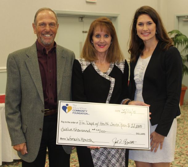 The White-Wilson Community Foundation (WWCF) awarded the Florida Department of Health-Santa Rosa County with a check for $12,000 at the March 27 Navarre Chamber Commerce and Coffee.