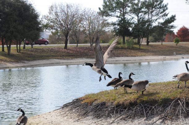 Canada Geese (not Canadian) have landed in Navarre and have been spotted off and on for three weeks at the ponds located at the entrance to Holley by the Sea. Canada Geese are found in every contiguous U.S. state and Canadian province at one time of the year or another.