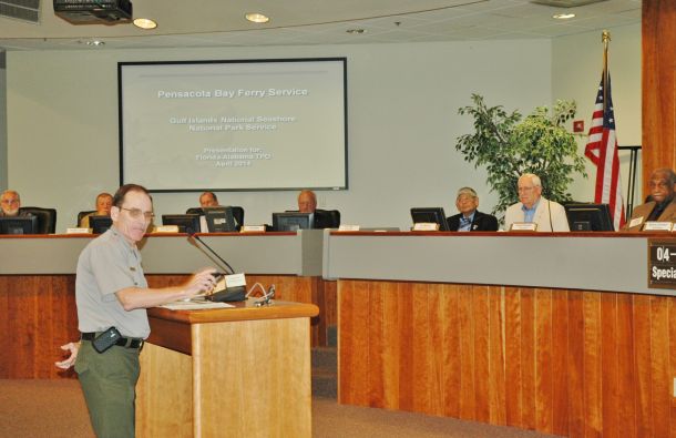 Members of the Florida-Alabama Transportation Planning Organization (TPO) received an update on the future Pensacola Bay ferry service at their April 9 meeting in Milton. Dan Brown, Gulf Islands National Seashore (GINS) park superintendent, said the ferry service is projected to being in March 2017.