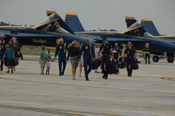 Family members anxiously watched the skies and listened March 24 and in an instant the Navy’s Blue Angels made a pass over the runway at NAS Pensacola. The team had spent the last eight weeks training at Naval Air Facility El Centro, Calif. and was now back home.
